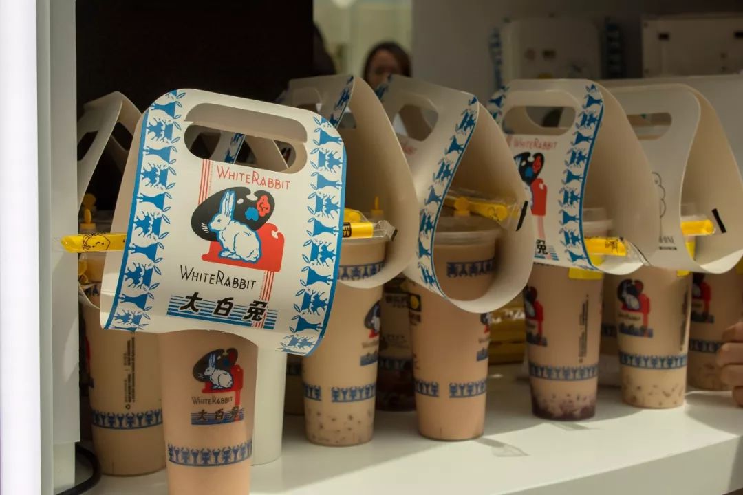 大白兔奶茶店里提供6种不同茶饮,菜单上的价格在19-25元不等,其中两款柠檬茶饮为限量(每人限购4杯)。人们慕“大白兔”之名而来,只要和大白兔有关的产品都开启了买买买模式。很快,隔壁售卖大白兔的周边店被扫荡一空,包括大白兔帆布包和抱枕等等。