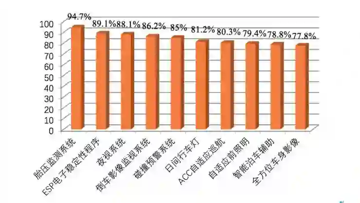 进入了21世纪后,自动驾驶产业得到了足够的重视和发展。传统的车企倾向于从辅助驾驶到自动驾驶的逐步递进方案。图为我国学者于2012年调研得到的辅助驾驶系统的消费认知度情况。