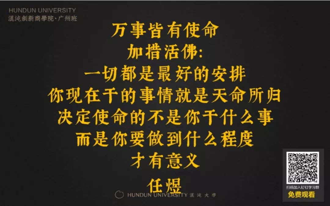 所以我其实特别想跟大家分享一句话,加措活佛说“一切都是最好的安排”,我最后得到一个结论是:一切皆有使命。所以你现在干的事儿就是天命所归,因为决定使命的其实根本不是你干什么事,而是你要把什么事做到什么程度才有意义。这其实是我今天最想跟大家分享。