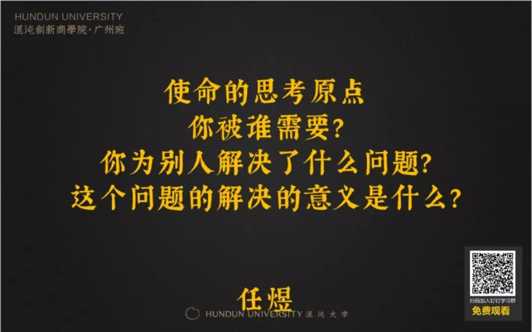 使命的思考原点,不是自利,第一位是利他,你被谁需要,你为别人解决了什么问题?这个问题的解决的意义到底是什么?如果从这个角度来讲,使命到底有什么用?