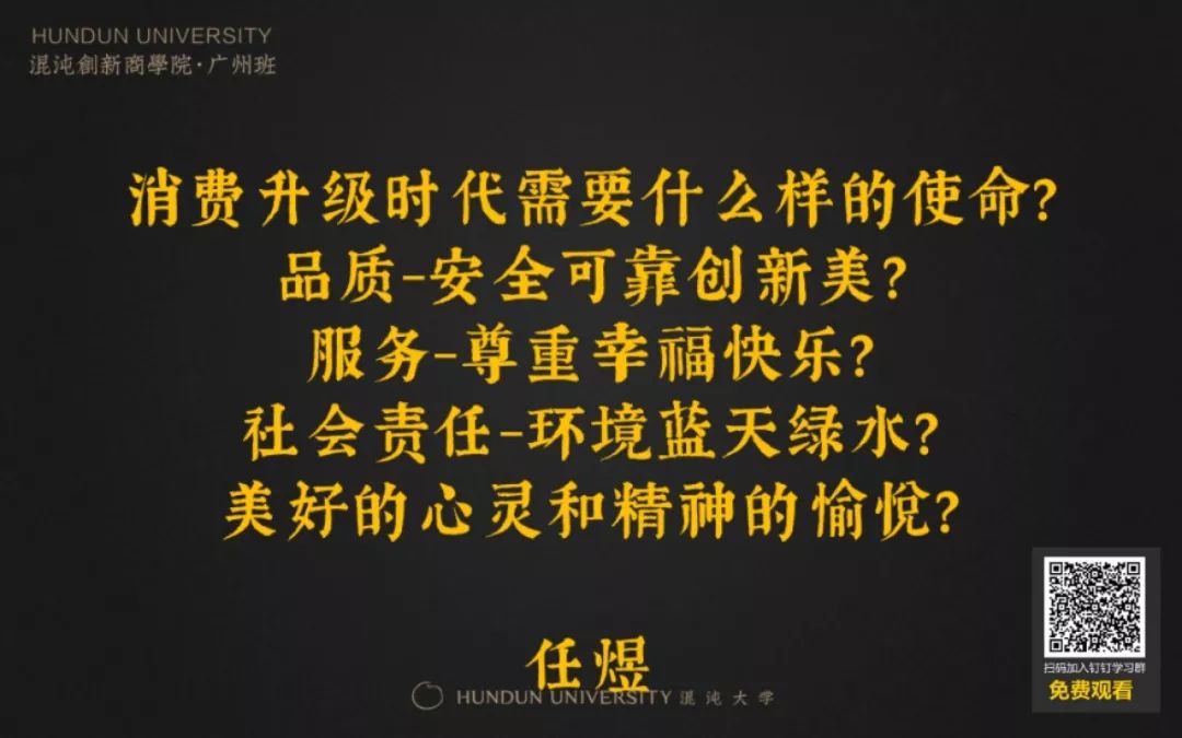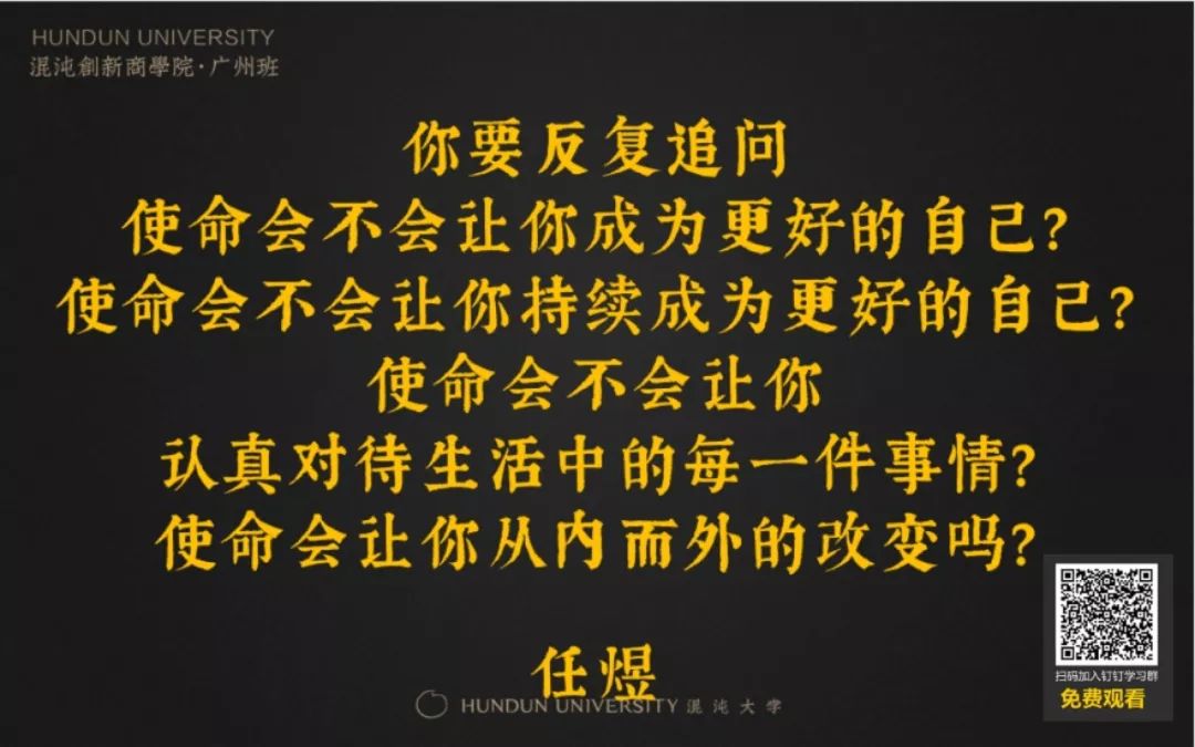 如果你的宿命是做辣椒酱,也不是不会做其他的事情,能产生使命吗?你看他做到什么规模了是吧?我不给答案,你们大家想一想,陶华碧的老干妈,做到这个状态下,它有使命吗?或者说它产生了使命的效果吗?