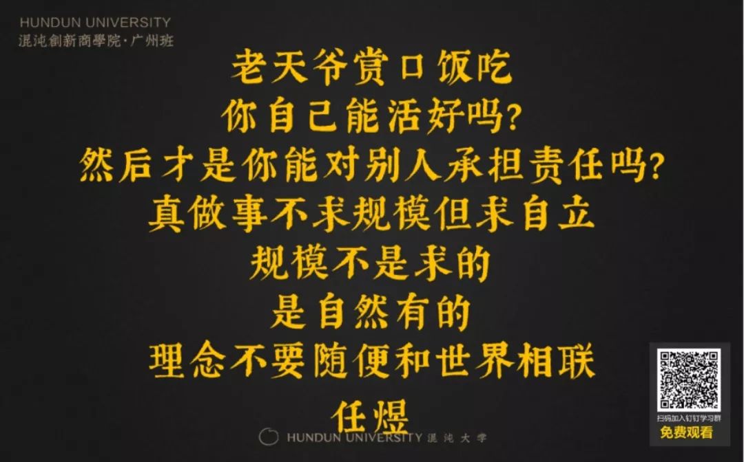 如果第一步都做不到,其实做组织是很可怕的一件事情。而且如果真的明白了这个道理,我认为真做事是不求规模,但求自立规模不是求,规模是自然而然有的。