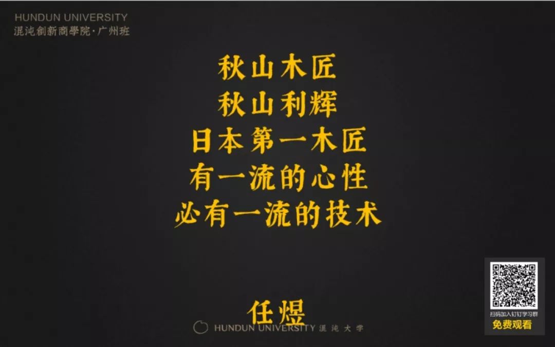 天命,古稀天命。日本的皇宫宫内省以及日本的大企业,如果要订木造家具,一定都指定他。他做的家具在材料保证的前提下,100年到200年不会坏。他教出来的徒弟,在材料许可的情况下给你造的家具,80年到100年也不会坏。他怎么做?