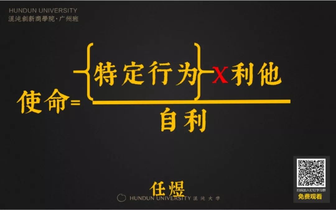 所以我们再来确认一下这个公式,真的使命等于特定行为,乘以利他之心除以自利。