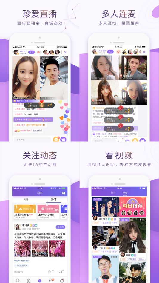 所谓视频相亲,是珍爱网早在2017年7月上线的直播产品。这一直播产品采用双屏直播的方式,同时进行“1V1”双屏直播软件保护,正式将双屏直播模式带到了婚恋行业中来。作为“珍爱直播”的亮点之一,“1v1”双屏互动直播让用户能够与心怡的对象在左右两个屏幕中进行互动,拟真呈现了现实生活中面对面的沟通聊天场景,令用户在线上沟通时更具真实感,同时也能够体验到社交的乐趣。