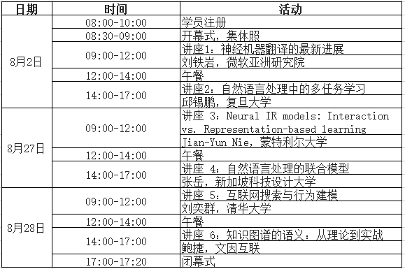CCF Advanced Disciplines Lectures (ADL 92) & NLPCC 2018 Tutorials