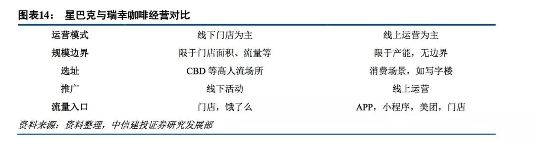 瑞幸咖啡相继与腾讯达成战略合作,入驻小程序;上线美团外卖,在顺丰配送的基础上壮大了配送团队,有利于满足因优惠力度和知名度增加带来的订单增长,同时美团也带来了新的流量入口。瑞幸在线上的优势仍很明显,而星巴克线下场景优势短期内亦难以取代。