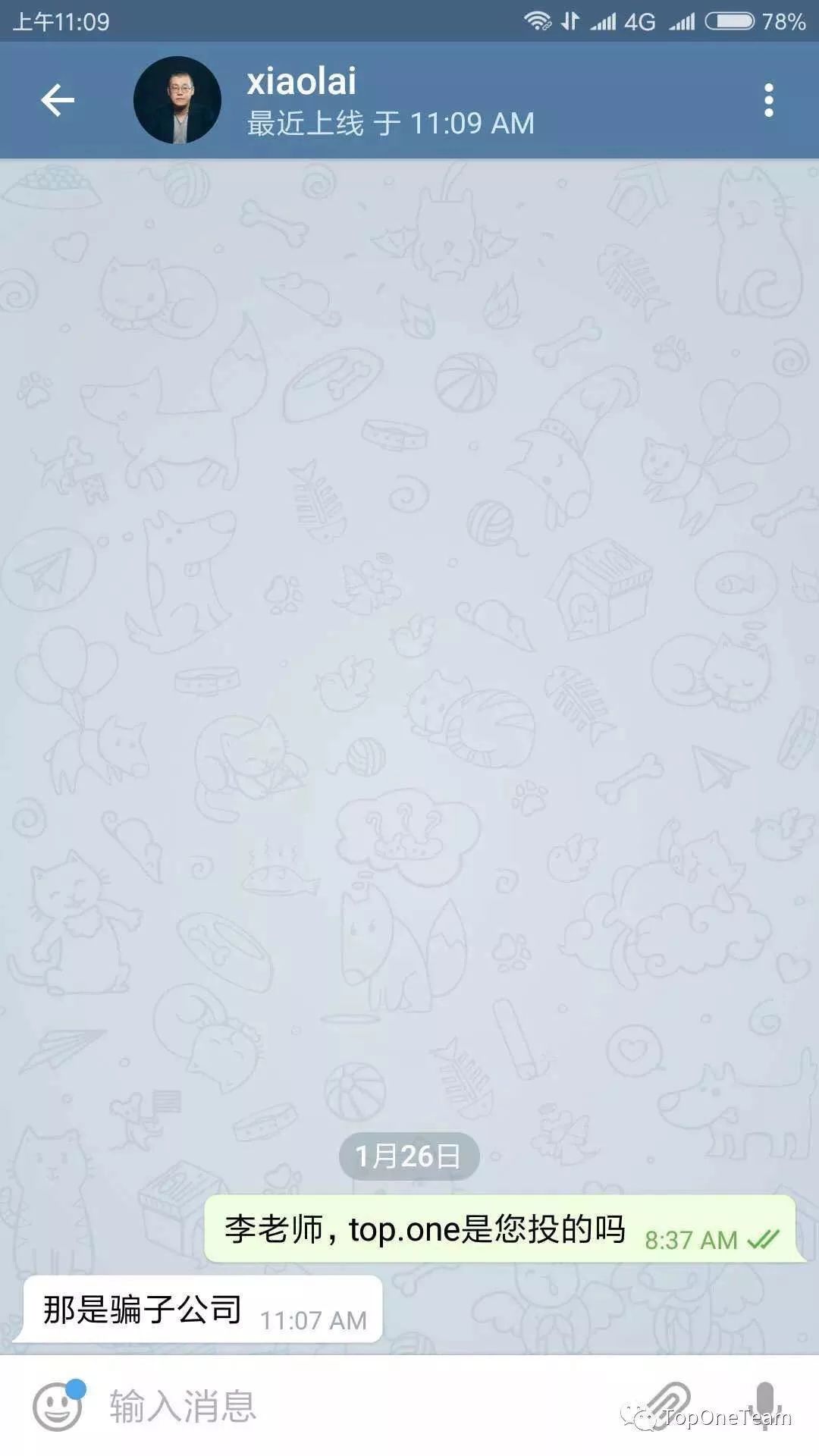 在此之前,有一家名为初贝资本的基金原打算投资Top.one 1000个ETH(目前$523),在telegram上咨询李笑来是否有投资Top.one,李回应,“那是骗子公司。”从而影响了投资合作。