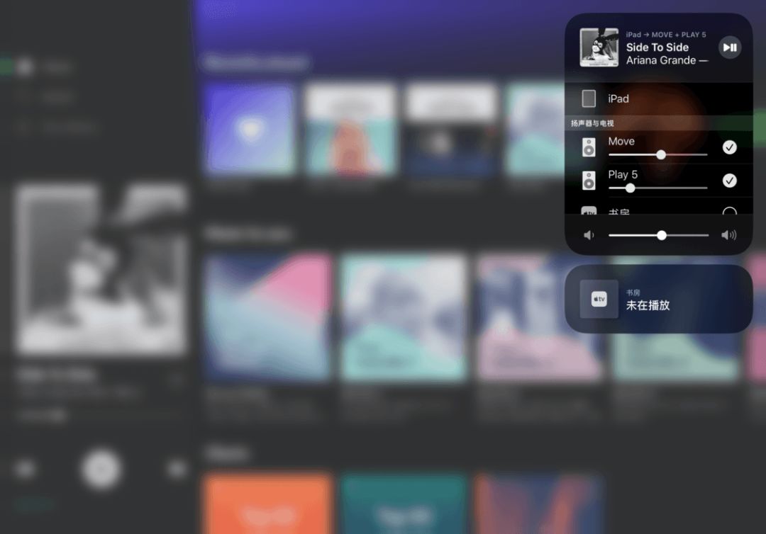 除了 Sonos 自家的这套控制系统,Sonos Move 还支持 AirPlay 2 协议,所以我还可以通过自己的 iPhone、iPad、MacBook Pro 等设备来方便地将音频隔空投放到 Sonos Move 上,让它与我的其它 AirPlay 设备联动,实现多房间同步播放同一首歌曲的效果。