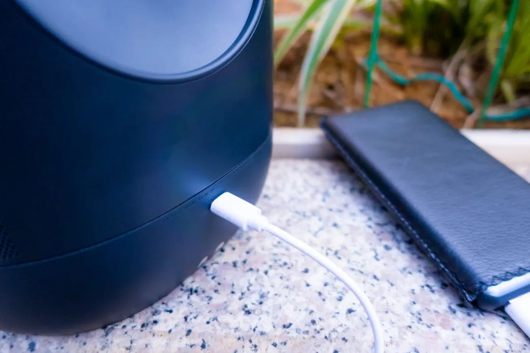 同时,Sonos Move 的背面还有一个 USB-C 接口,就算带到了在户外使用我也可以非常方便地通过「USB-C 数据线 + 移动电源」的组合给 Sonos Move 充电,PD 充电功率可以达到 45W,充电的速度还算不错。