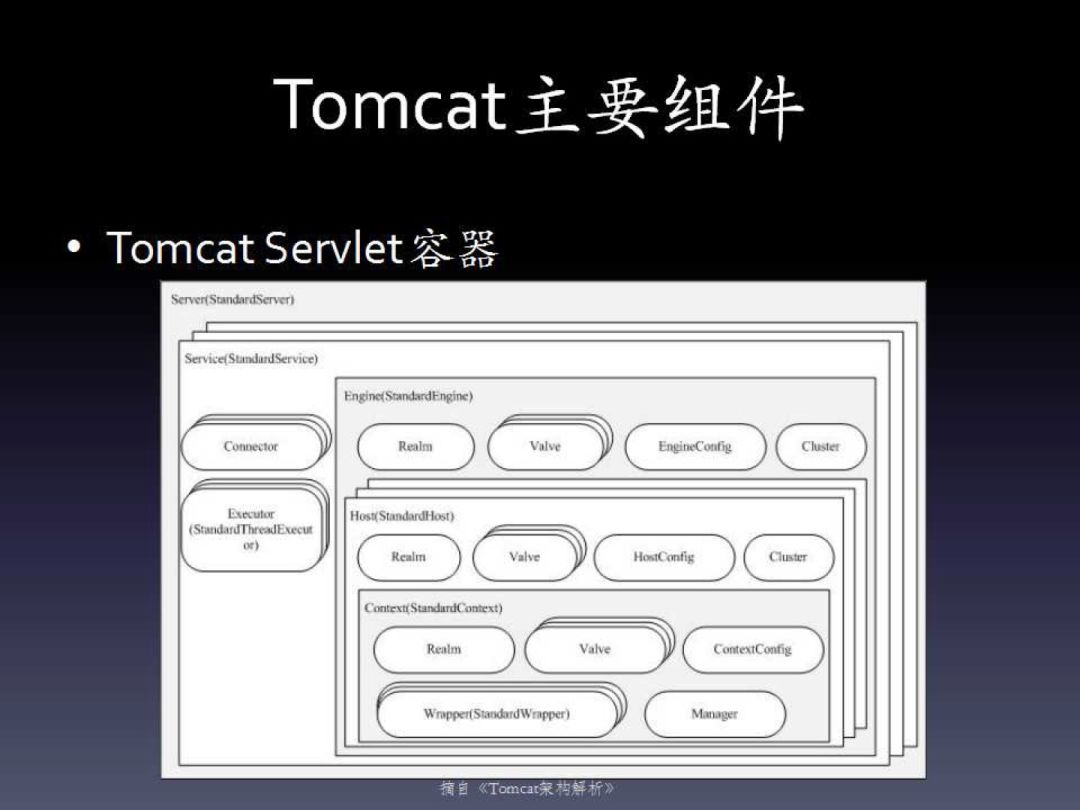 Servlet容器的组件见图:简单来说,Tomcat通过一种分层的架构使得Servlet容器有很好的灵活性,而且通过生命周期管理接口,为这些各层的对象提供统一的生命周期管理。