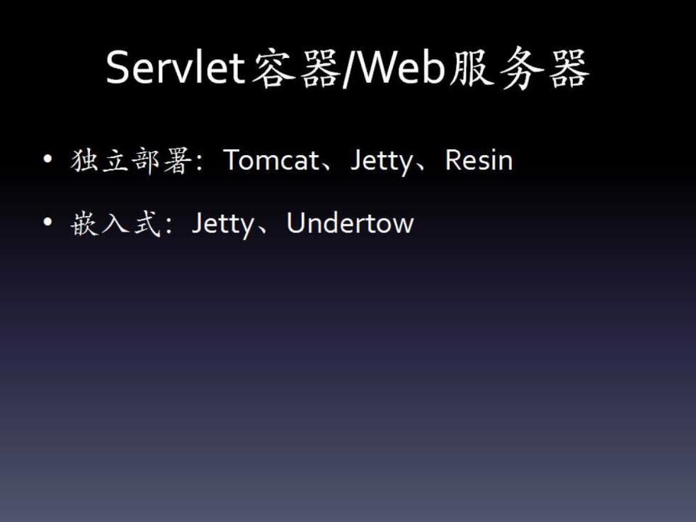 这一类服务器见图片,主要是Tomcat、Resin、Jetty、Undertow。