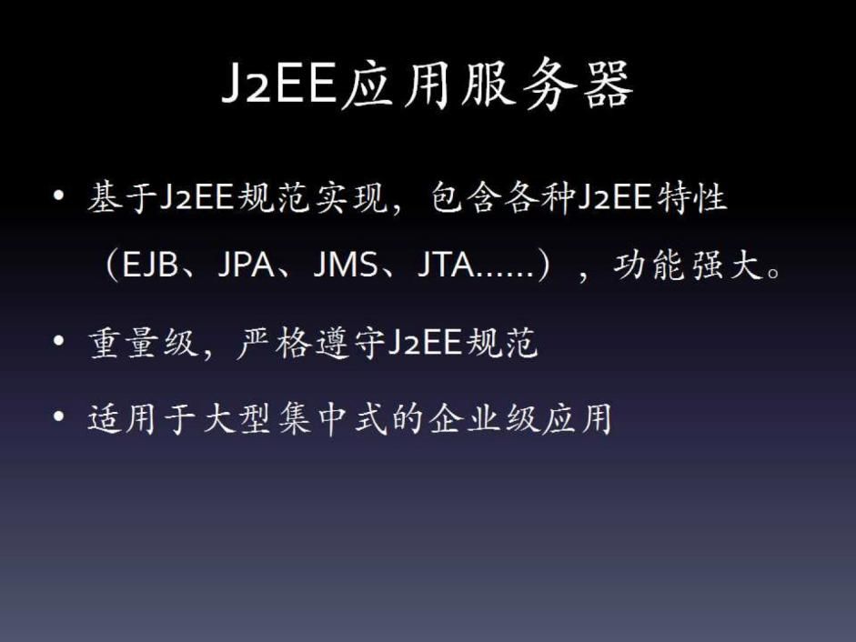 企业级应用服务器的特点就是过重。大概2010年之后(具体时间不确定),有几个转向了OSGi这种模块化架构,期望提供一种更加灵活的架构。像JBoss这一类产品在互联网规模化、轻量化的大背景下,似乎使用的相对越来越少。但是在集中式的企业级应用场景,它们应该还是主流,轻量级服务器是很难取代的。