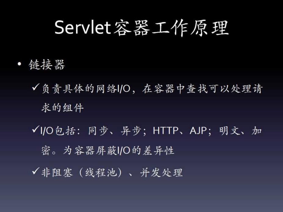 对于一款Servlet容器,主要分为两部分:链接器和容器。前者是服务器对I/O的封装,后者是对Servlet规范的实现。