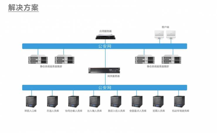 那么,如何将产品与场景有效融合,形成有效的智慧安防解决方案呢? 旷视与公安部进行合作,实现了从硬件到软件的双重升级。在硬件层面,旷视配合公安系统已有的静、动态防控网,在真实场景中部署智能摄像头,配合后端服务器的搭建,有效完成“从数据采集到汇聚存储,再到结构化处理与深度挖掘的视频侦查工作。”