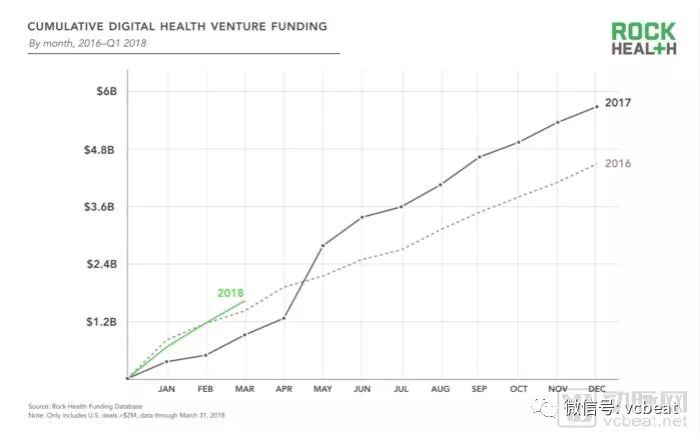 Rock Health最近发布的2018年第一季度数字医疗行业融资报告显示,今年数字医疗领域的资本热度依旧不减。