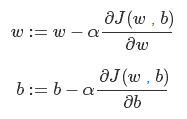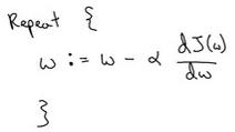 迭代就是不断重复做如图的公式: :=表示更新参数,α表示学习率(learning rate),用来控制步长(step),即向下走一步的长度,dJ(w)/dw 就是函数 J(w)对 w 求导(derivative),在代码中我们会使用 dw 表示这个结果。