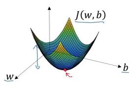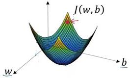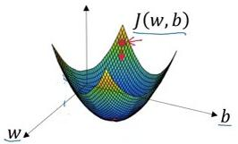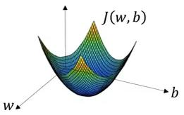 如图,代价函数(成本函数)J(w,b)是一个凸函数(convex function),像一个大碗一样。