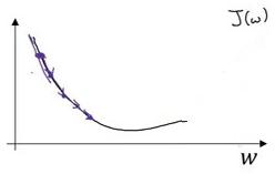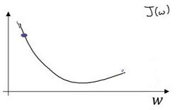 假设我们以如图点为初始化点,该点处的斜率的符号是负的,即dJ(w)/dw<0,所以接下来会向右走一步。
