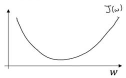 假定代价函数(成本函数)J(w)只有一个参数 w,即用一维曲线代替多维曲线,这样可以更好画出图像。