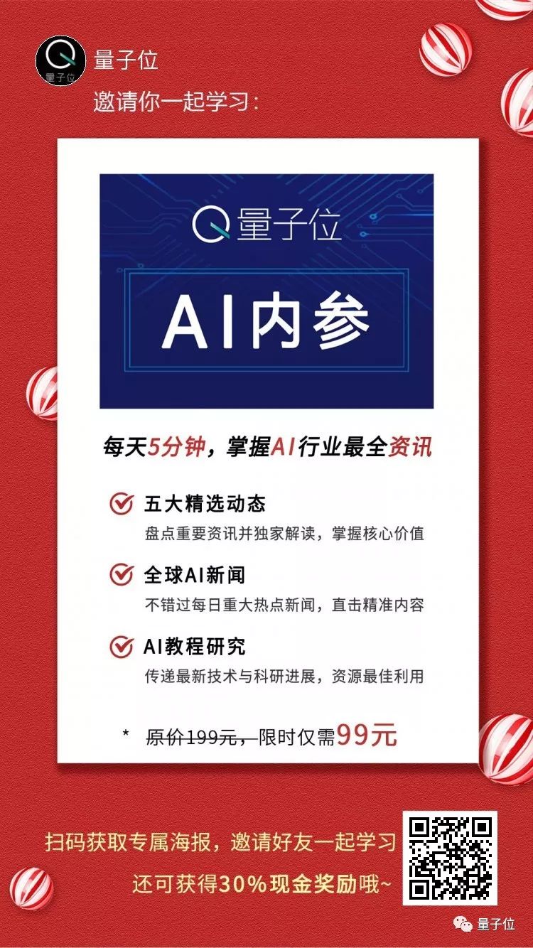 欢迎对AI感兴趣的同学,在量子位公众号(QbitAI)对话界面回复关键字“微信群”,获取入群方式。(技术群与AI+行业群需经过审核,审核较严,敬请谅解)