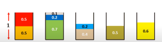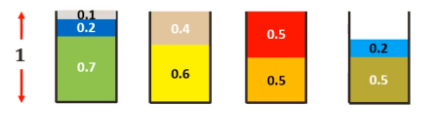 我们来看一个示例:项是 0.5, 0.7, 0.5, 0.2, 0.4, 0.2, 0.5, 0.1, 0.6,箱子的大小均为 1。