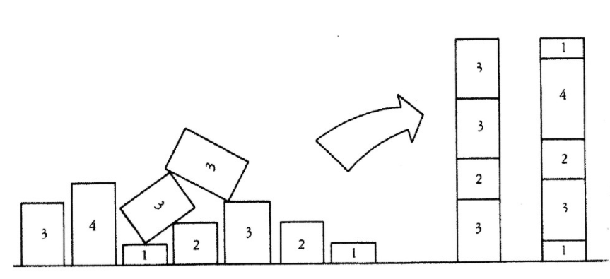 3. 最优匹配法 (Best Fit):按顺序浏览箱子,将每一个新的项放在最适合的箱子里。如果不适合,则创建一个新的箱子。