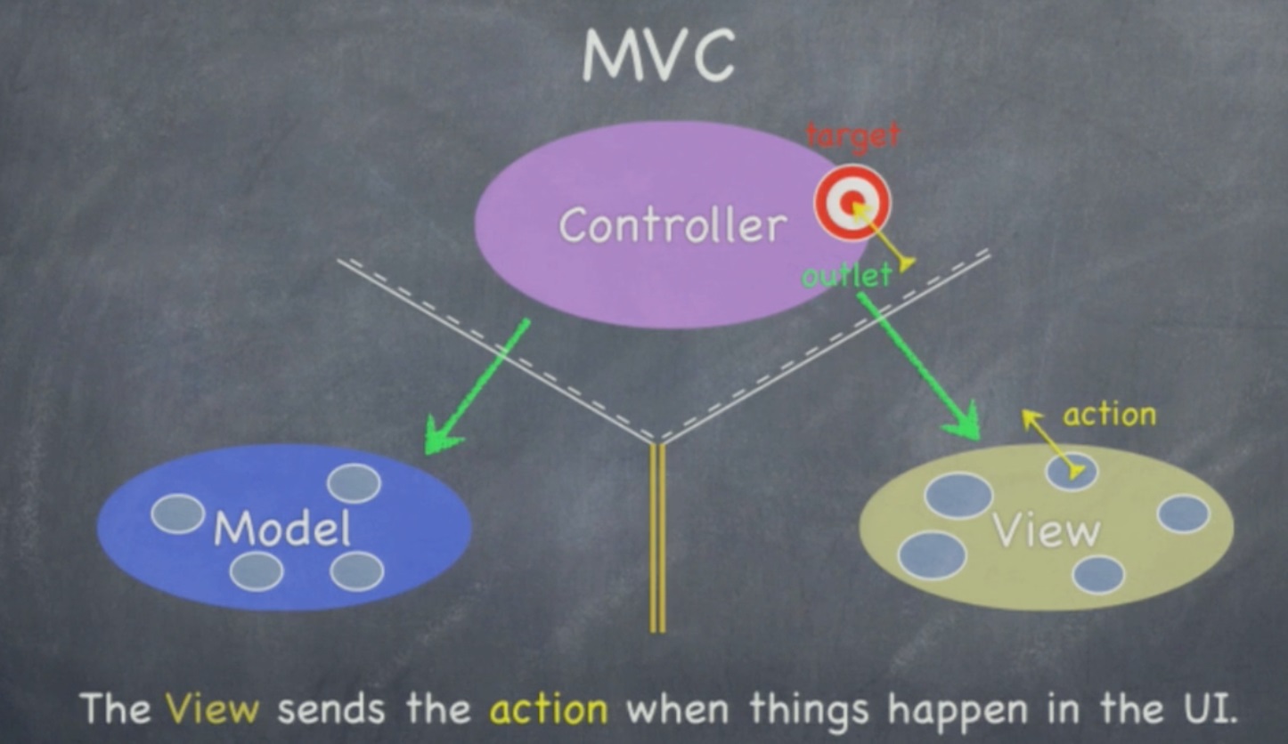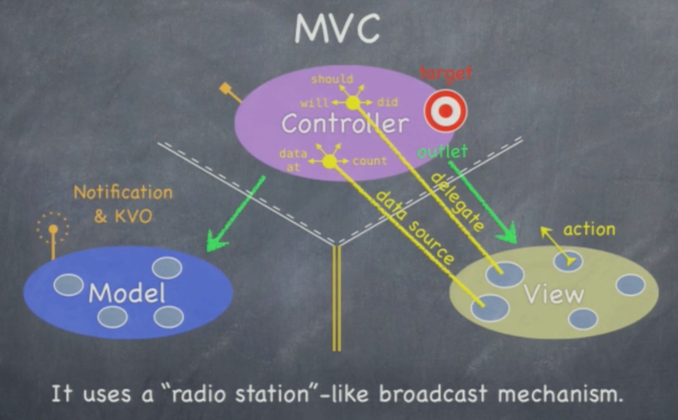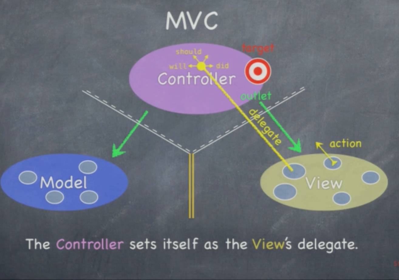 在程序过程中,View层其实是需要与Controller通信的,当然View层不可能直接调用Controller的某个方法来处理用户点击事件,因为View不知道该使用 Controller中的哪个方法。因此,使用了一种叫做Target的方式来处理这个问题,Controller会事先告诉View,如果触发了某个事件,View就会把这个动作转给Target。然后Controller运行完该方法,处理好这个时间以后就会告诉Veiw。