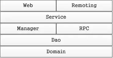 其中Web是负责提供Action / Controller,Service负责业务逻辑处理,Manager负责事务数据规整,Dao负责ORM逻辑,Domain管理Pojo对象。而RPC负责调用外部资源,Remoting负责提供对的请求。而在提供对外服务的时候,我们还会提供API或Client这样的引用包,它们的区别在于API提供的是协议包,而Client是客户包。API和Client拥有不同的 应用场景,Client包可能包含业务逻辑,会占用宿主服务器的系统资源 ,API仅仅是传输的协议定义。