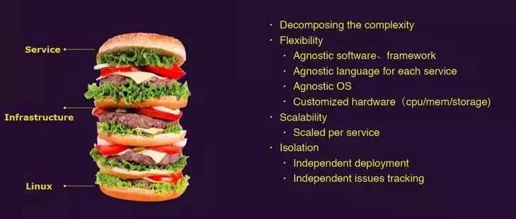 大家看到这张图,用了一个形象的比喻来体现传统的服务端软件。最下层是操作系统,通常是Linux,最上层是我们的业务功能和服务。在服务端架构,很习惯用增加一个架构层次的方式来解决问题。例如缓存层、数据访问层。在架构上按照自己的意愿去搭建不同层次的衔接环节,使架构具有足够的灵活性和扩展性。即时堆成这样,它依旧是非常合理的。