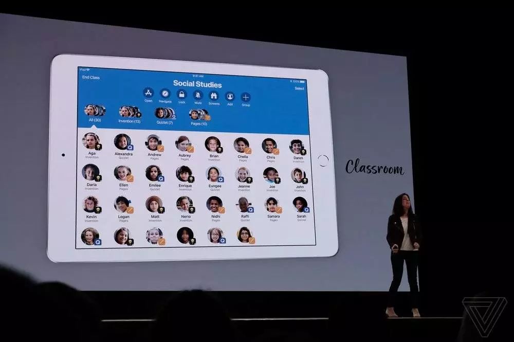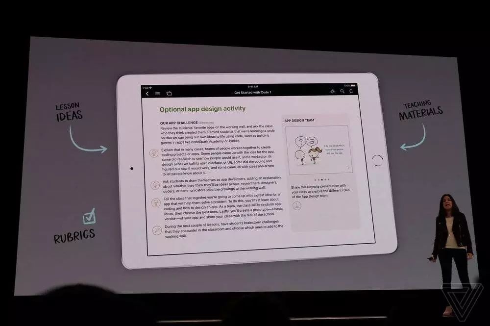 库克重新回到台上,一上来就激动地表示:“这对苹果来说是重要的一天,我们希望这对世界各地的学生和老师来说也是重要的一天。“