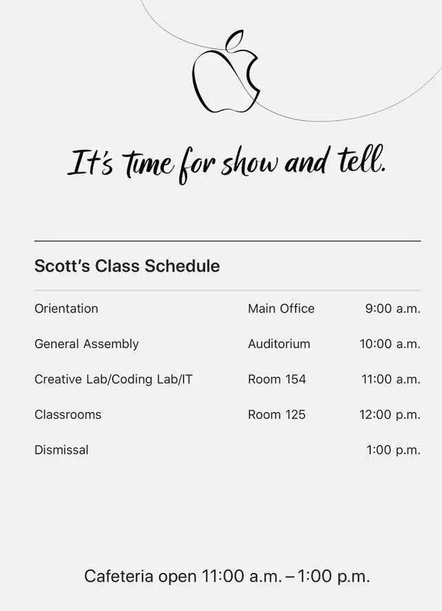 为了配合主题,苹果还煞有介事地发布了一份课程表: