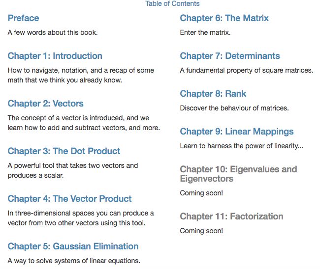 所以在这里收藏一下,有空的同学可以试一下这个在线学习线性代数的网站,不过看似还有最后两个章节没有完成:http://immersivemath.com/ila/index.html