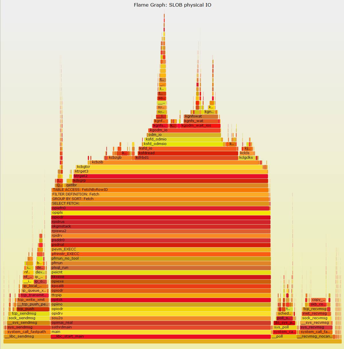 2、基于逻辑I/O的火焰图。不仅仅有执行计划的信息,还有执行I/O函数的信息,清晰明了。