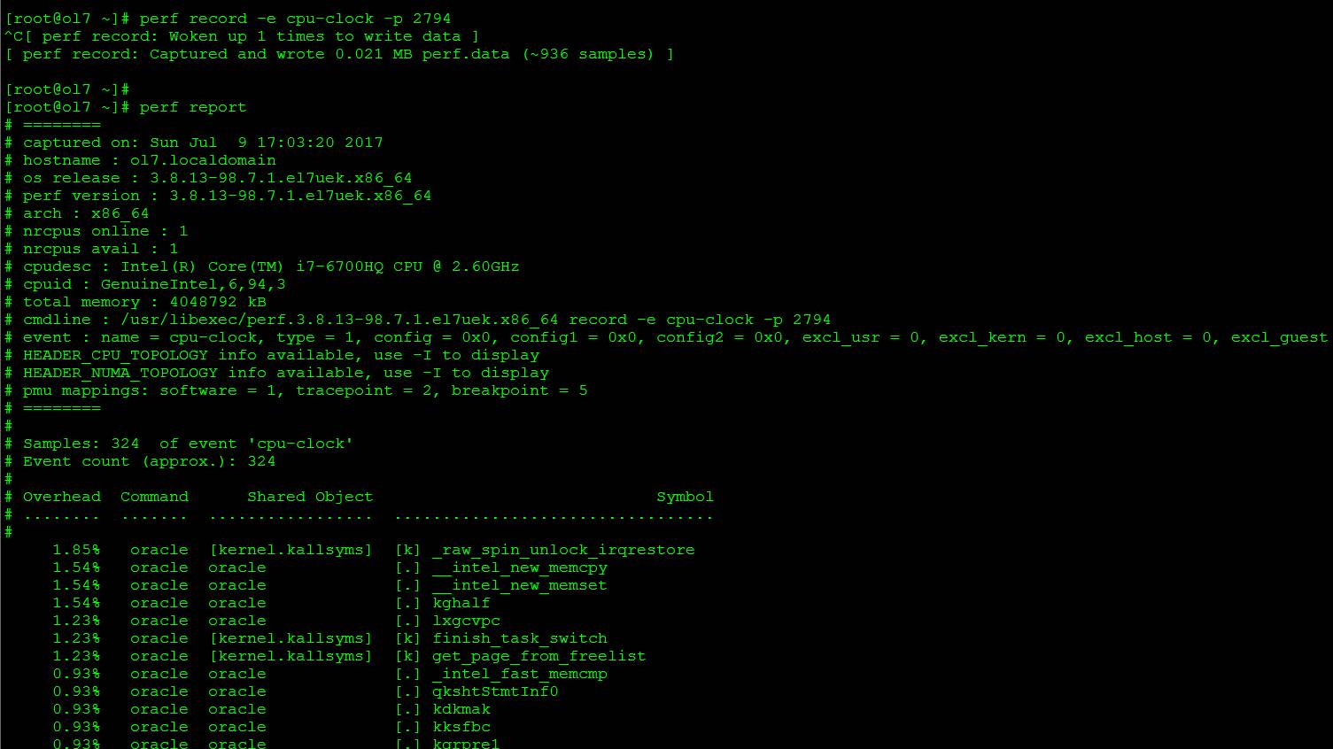这里介绍的Perf是运行在Oracle Linux Server Release 7.2上,内核版本4.1.12