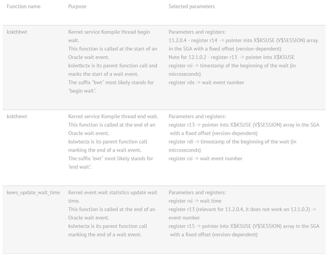 这里首先要介绍一下Oracle内核的三个函数:kskthbwt、kskthewt、kews_update_wait_time。