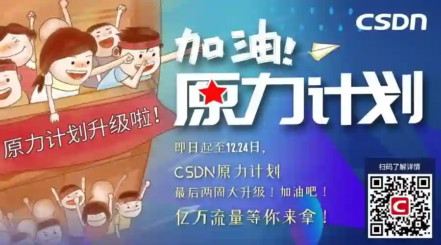 加油吧,原力计划升级版来啦!2019的年终,我们为您准备了一份流量盛宴!即日起,只要参与原力计划,并且文章符合要求,就可以得到流量+现金的扶持哦!
