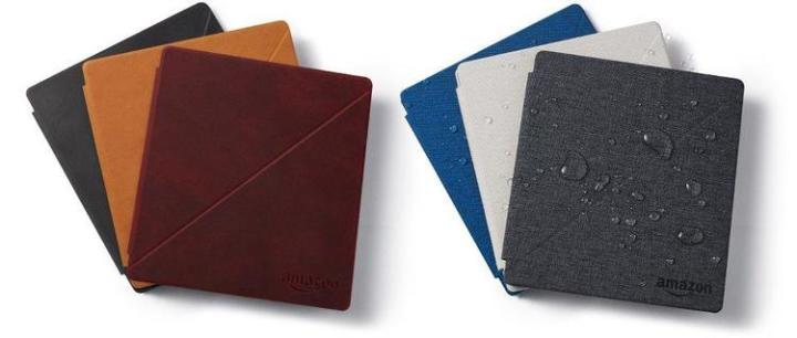 解放了充电功能,保护套有了更自由的选择。新 Kindle Oasis 同步搭配了两款立式保护套,可以作为支架用,各有三个颜色可以选择。真皮材质有更好的外观和手感,售价 499 元,纺织材质支持防水,售价 399 元,用户可以凭喜好单独购买。