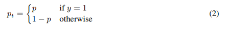 RetinaNet是1-stage的目标检测算法,没有RPN阶段,直接在feature map上做密集的anchor采样(over a regular, dense sampling of possible object locations),速度快;此外,为了解决SSD等1-stage目标检测算法中,训练阶段的正负样本不均衡问题(毕竟RPN还有过滤海量负样本的作用呀,虽然frcnn中RPN通过粗暴的控制正负样本比例为1:3做了负样本过滤),RetinaNet就通过focal loss进一步控制训练阶段的正负样本比例,效果好,如公式(1)、(2):