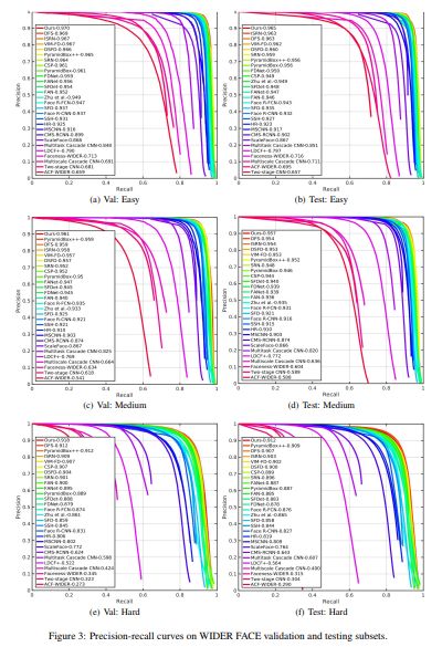 作者也提到,人脸检测也受到了通目标检测算法的启发,如frcnn、 R-FCN、SSD、FPN、RetinaNet、RefineDet等;