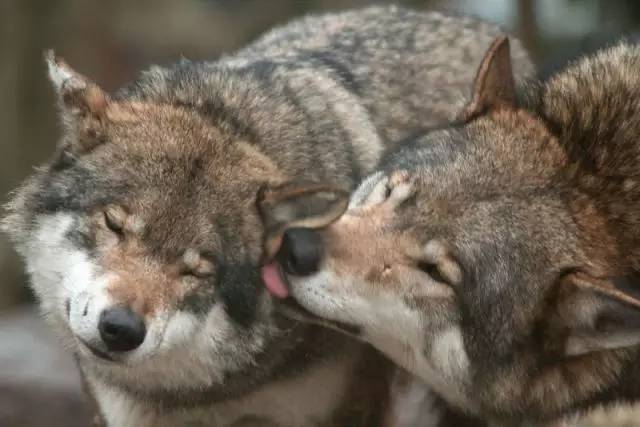 然而,伯恩斯说我们可以明显看出狼的行为与犬行为相似的表达方式。例如,狼用舔对方脸颊的方式表示问候。对于这些群居动物,这一舔舐行为相当于重要的社交问候方式,同时也用于检查和确定其他狼是否带回食物。