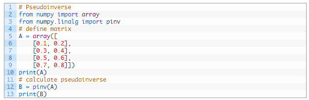 NumPy 提供了函数 pinv() 来计算矩形矩阵的伪逆。