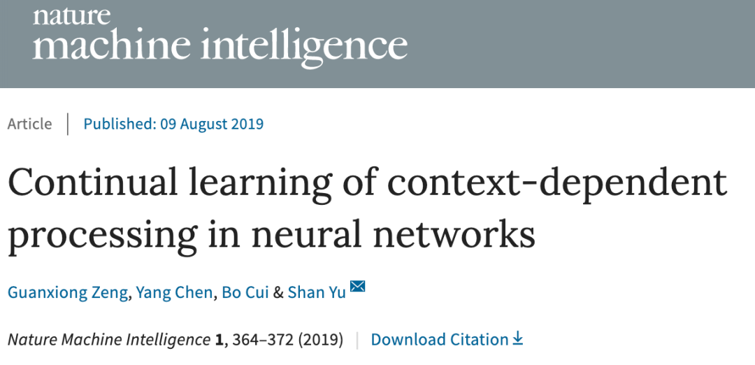 (Continual learning of context-dependent processing in neural networks),作者来自自动化所脑网络组研究中心与模式识别国家重点实验室余山团队,包括共同第一作者
