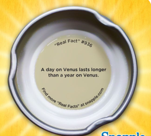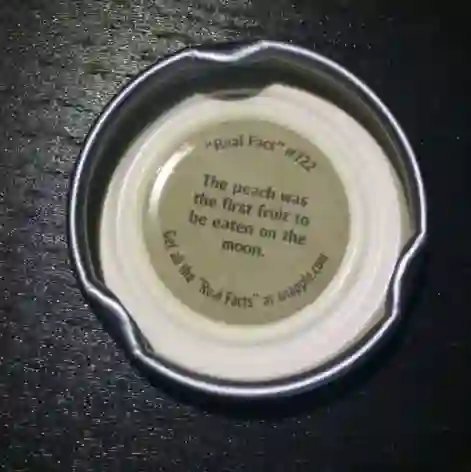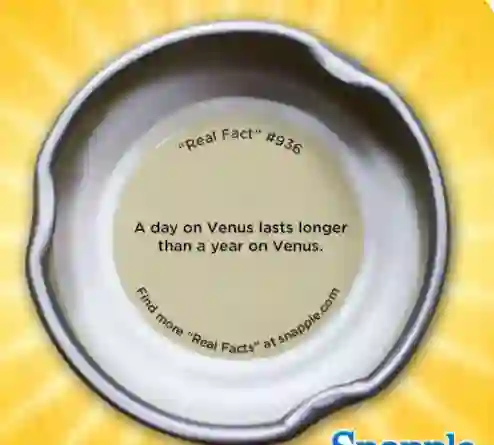 美国一家饮料公司Snapple曾将瓶盖当作长期营销卖点,他们在瓶盖中印了上各种有趣的反常识冷知识,例如“金星上的一天比金星上的一年还要长”、“桃子是第一个在月球上被吃掉的水果”。