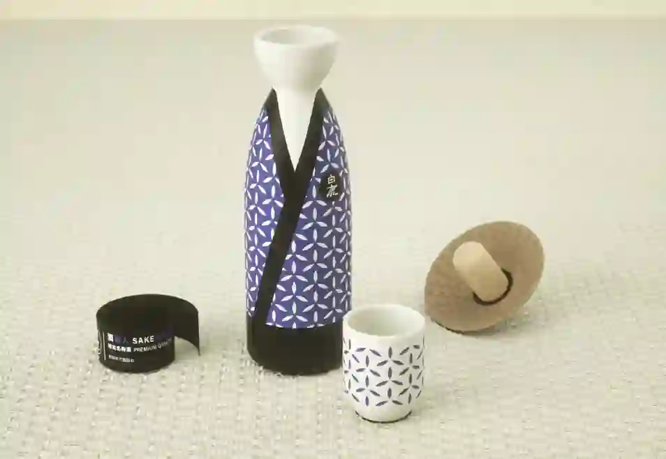 这款日本白鹿清酒,瓶身是穿着日本传统服饰的农夫,瓶盖就是他们头上的“斗笠”。整个设计极其和谐而优美。
