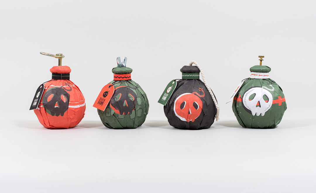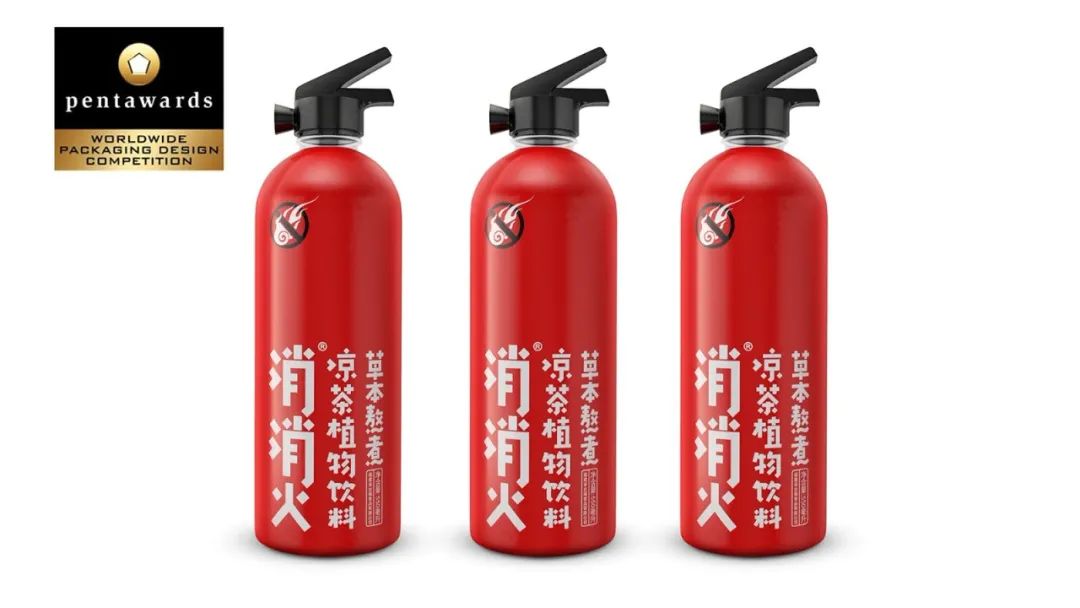看完了炸弹,不如来杯凉茶降降火。如何设计才能展现出凉茶的降火效果?干脆将瓶子设计成灭火器吧!瓶盖就是灭火器的喷头。这项设计也成功拿下了2017Pentawards饮料类银奖。