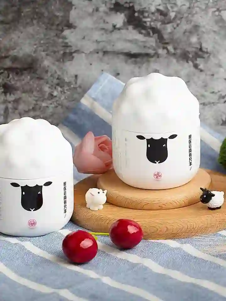 这款养羊啦酸羊乳产品,瓶身是可爱的小羊,瓶盖设计成了小羊毛茸茸的后背,可爱程度简直不输三得利猫咪瓶盖。
