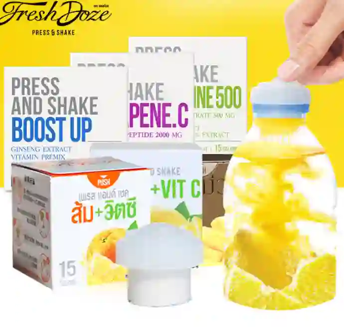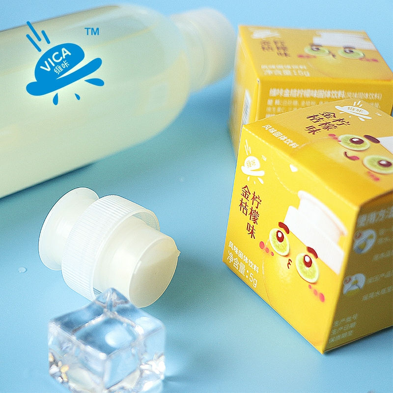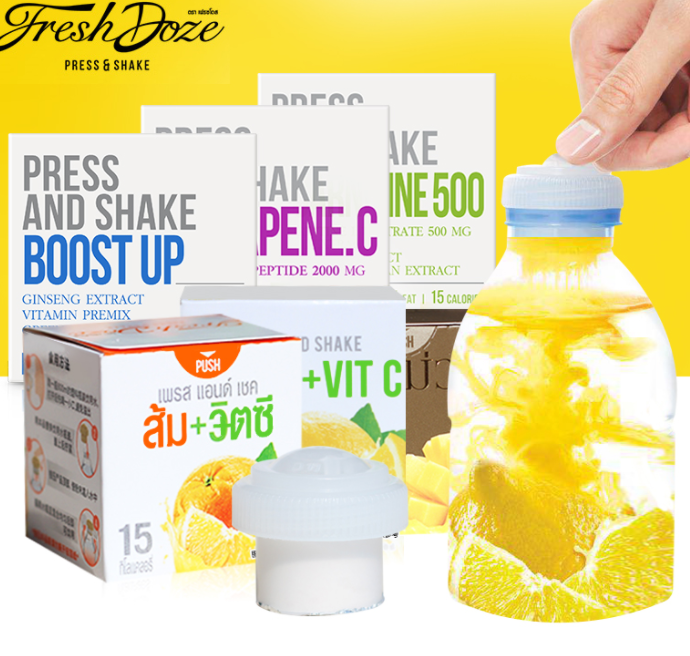 去年,一款来自泰国的Fresh Doze瓶盖饮料曾在抖音上小火了一把,至今在抖音中还能看到各类测评视频。这款产品将饮料粉末放在瓶盖中,将其拧在矿泉水瓶上,用力按压,粉末就会调至水中形成饮料。