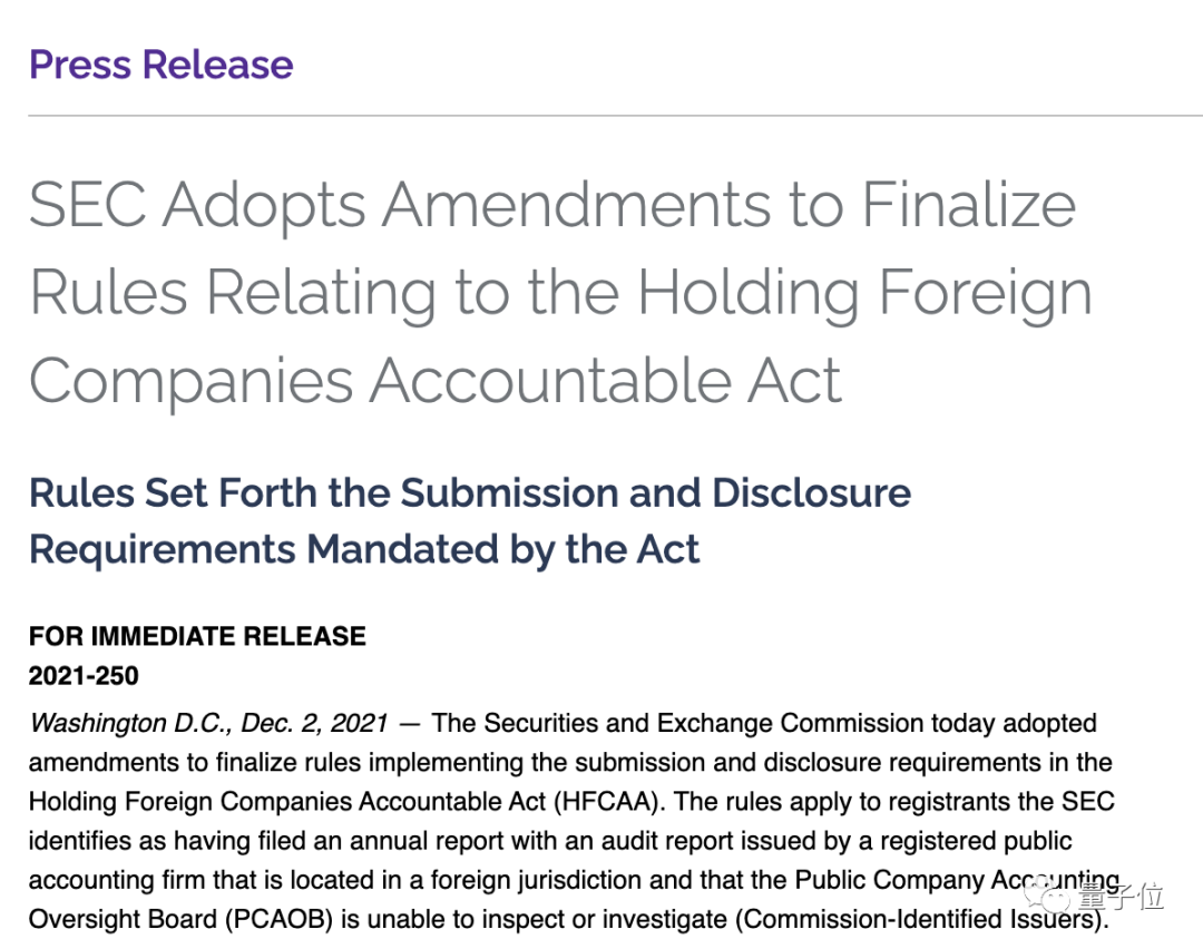 去年(2021年)12月2日,《外国公司问责法》最终修正案通过。
