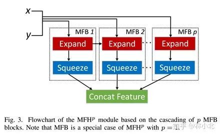 在MFB的基础上,作者于《Beyond bilinear: Generalized multimodal factorized high-order pooling for visual question answering》一文中提出了MFH(Multi-modal factorized high-order pooling )。把MFB操作分为两个阶段Expand Stage和Squeeze Stage,MFH就是把MFB堆叠起来以得到高阶信息,如下图所示